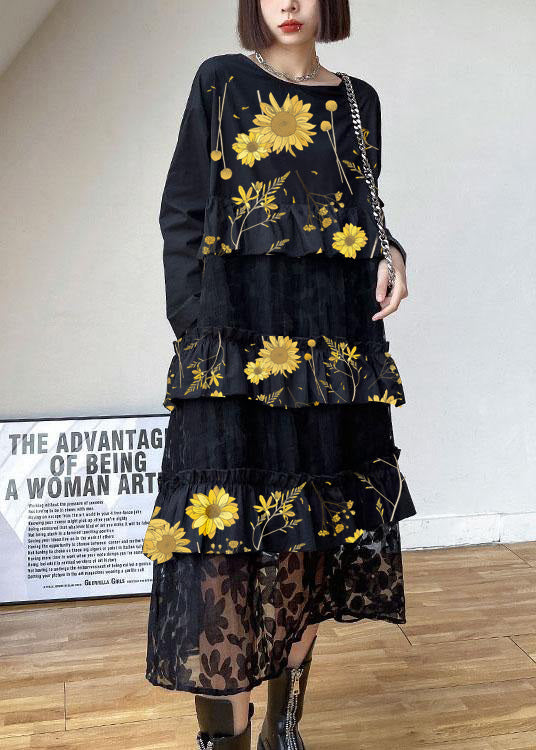Bohemian sunflower pattern Ruffles Fall Lace Dresses(Shipping out within 24H)