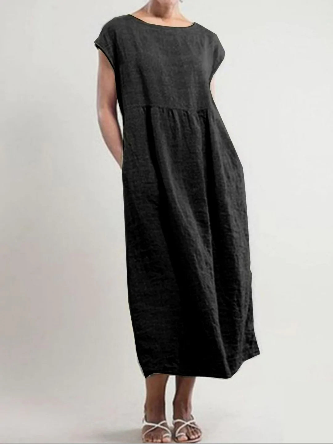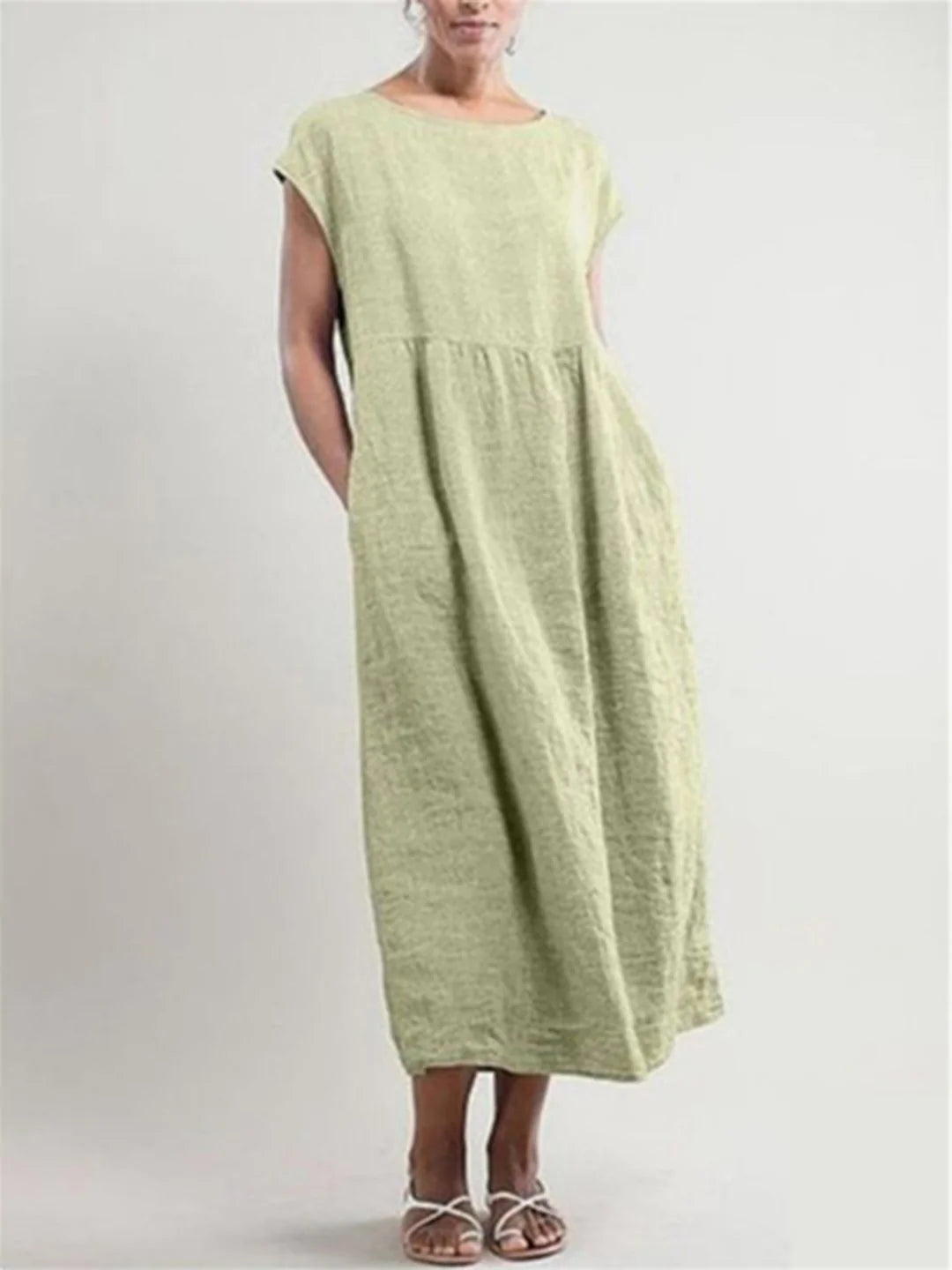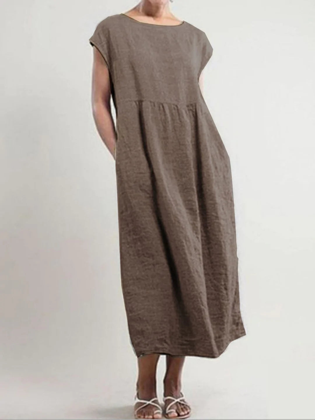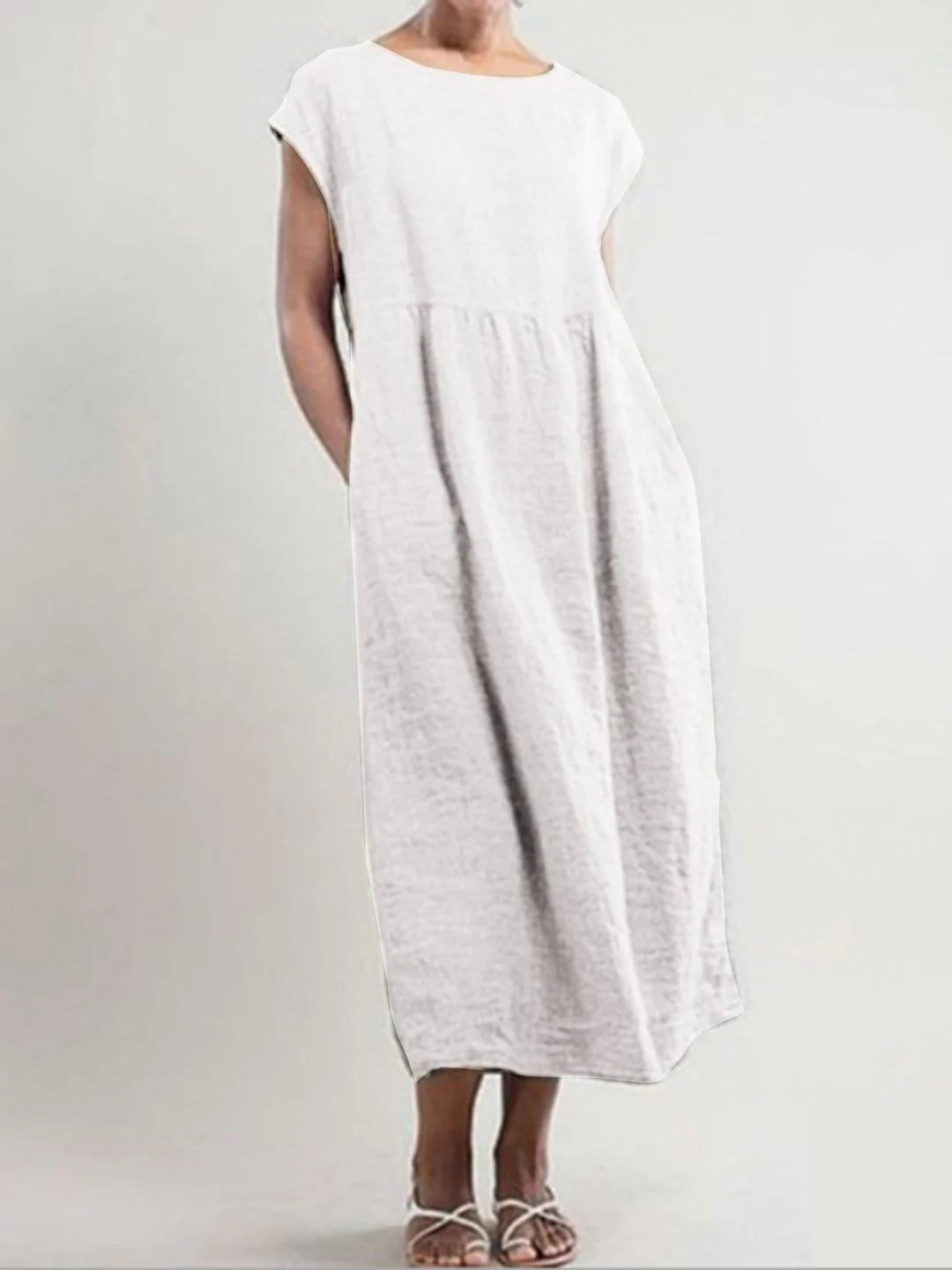 Solid Color Sleeveless Loose Cotton Linen Pocket Dress