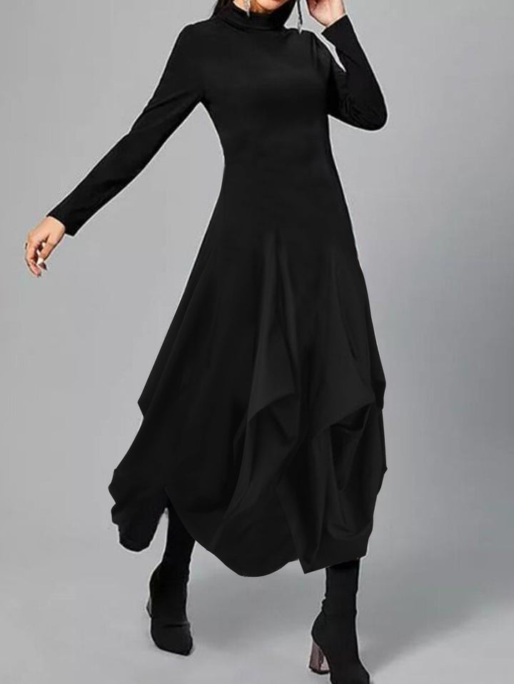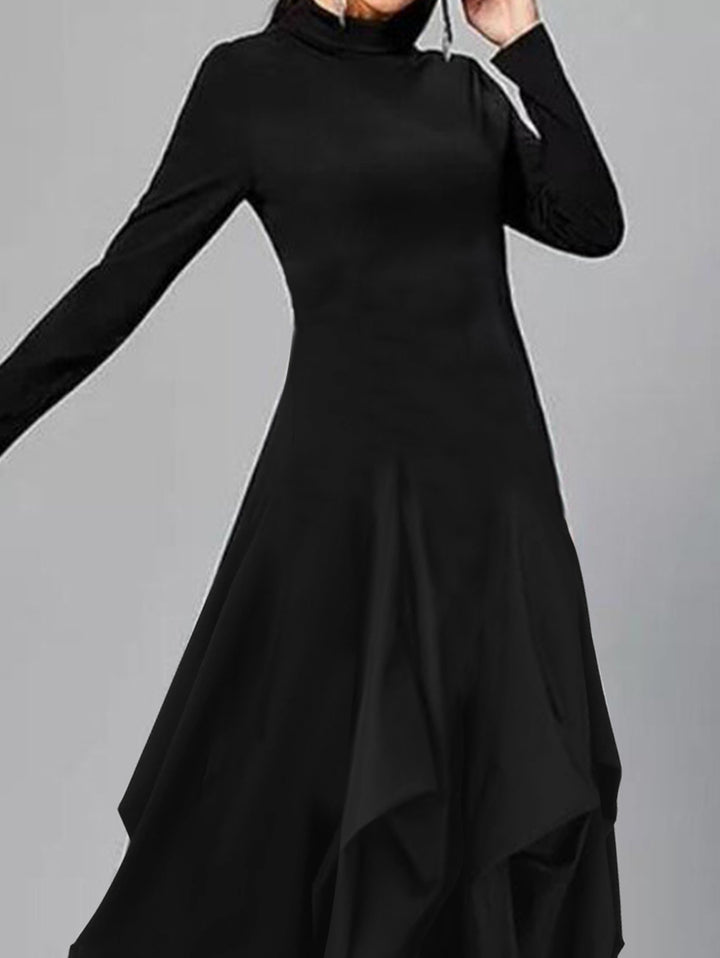Turtleneck Long Sleeve Asymmetrical Midi Dress
